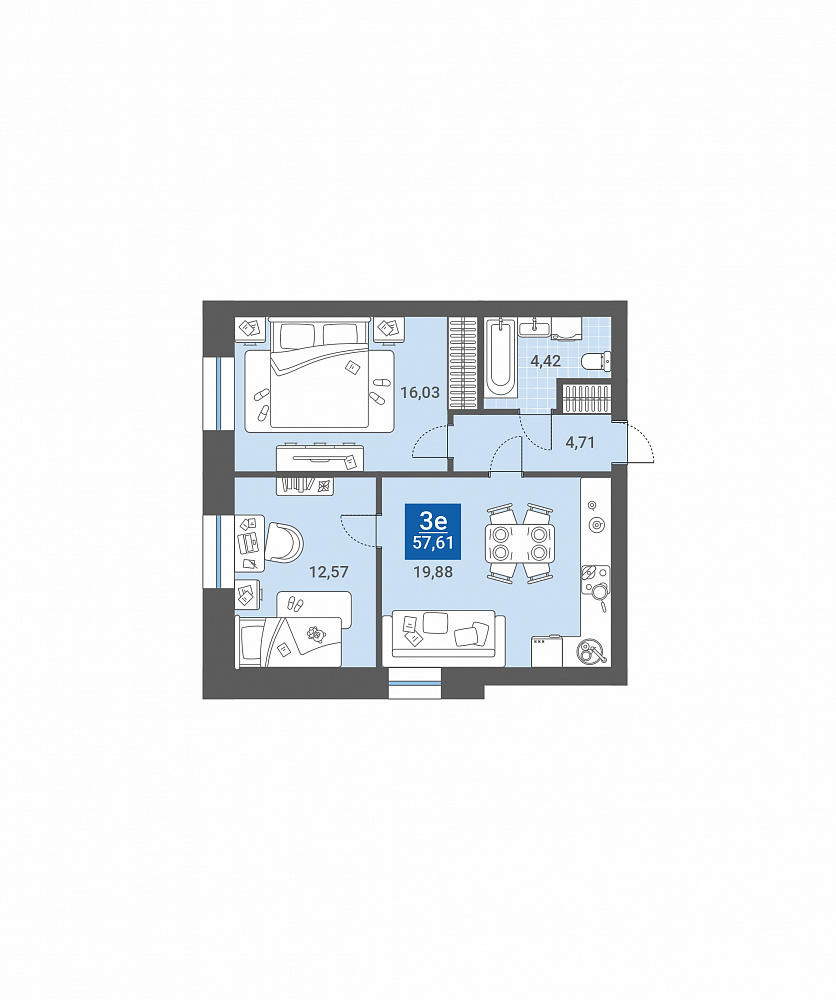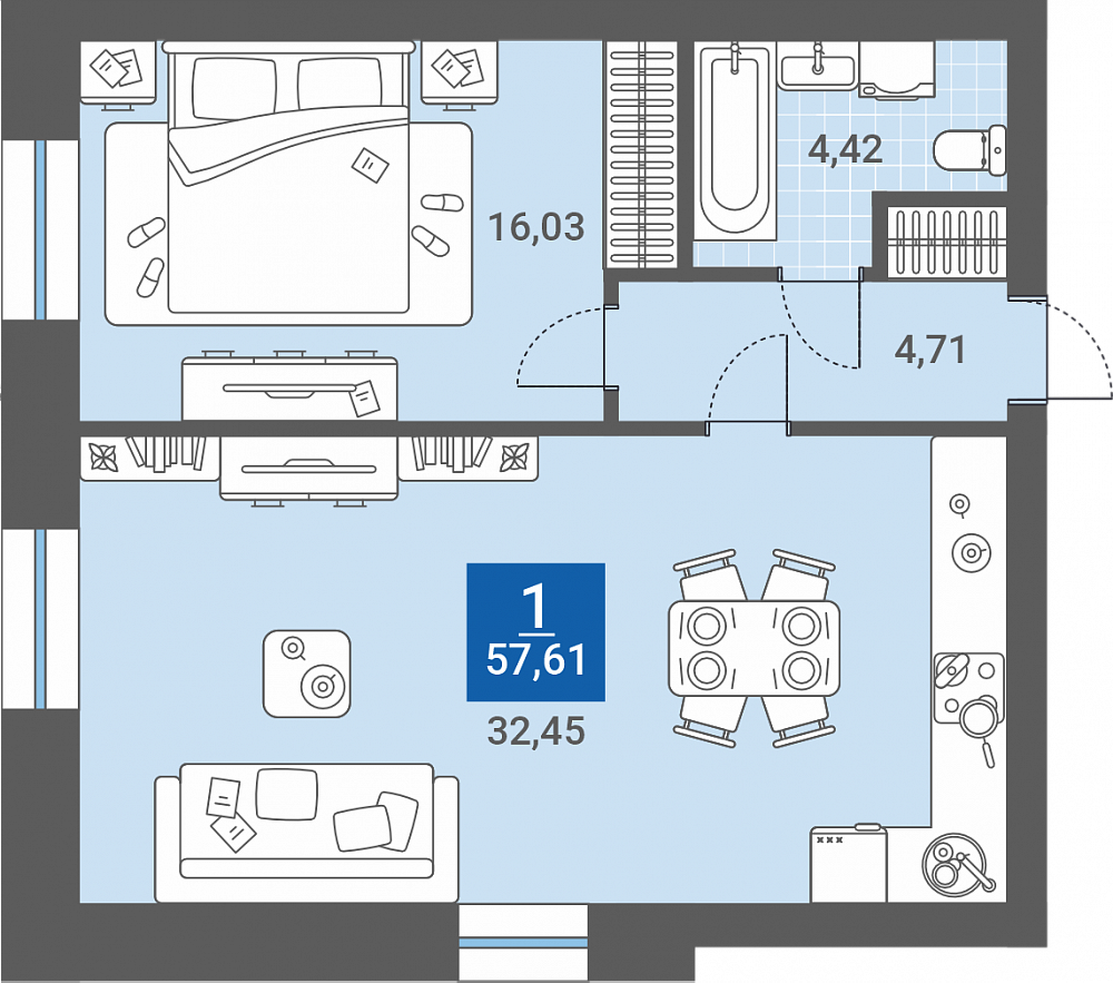 57,61 м²